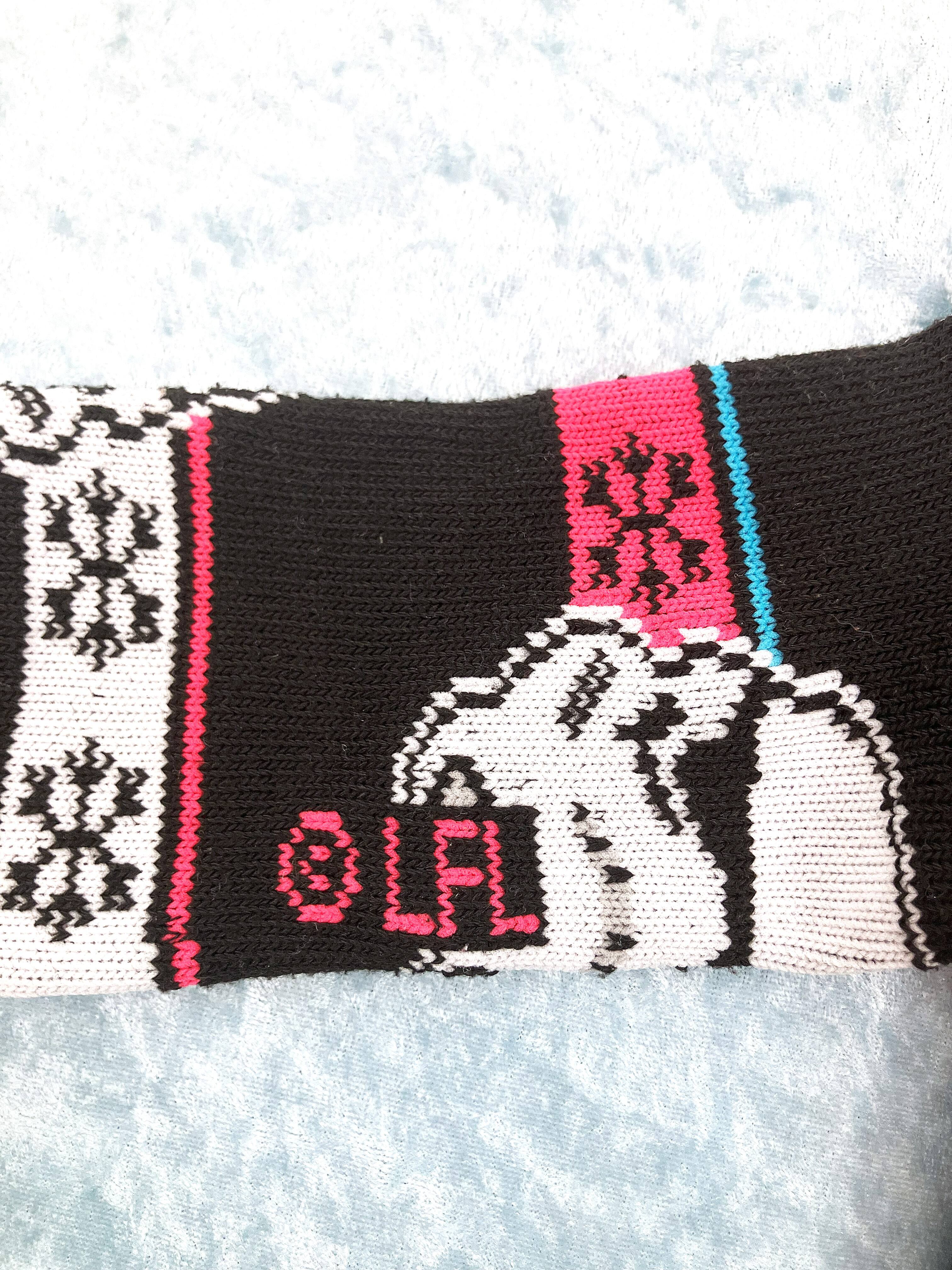 Over the calf length. Lucas Films License Trademark. Thick, double layered winter socks. Print: Darth Vader, Stormtrooper, and snowflakes. Size 4-8.